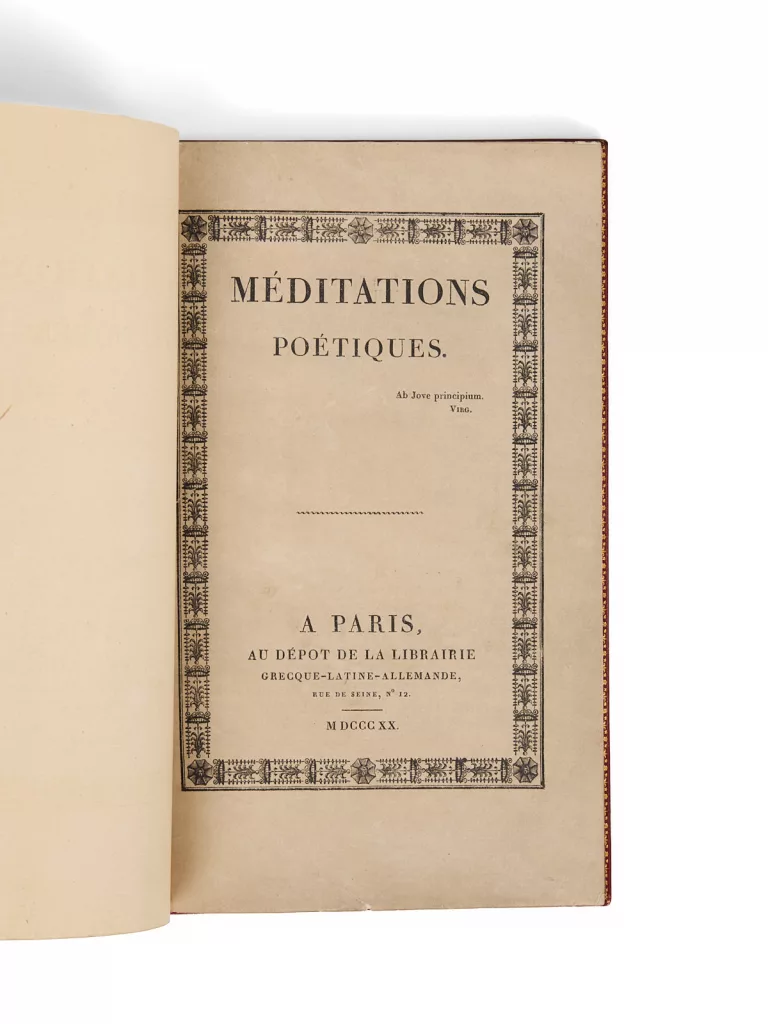 « En mars 1820, un petit volume de 24 poèmes sonne la fanfare de la poésie romantique. Son auteur, un jeune Bourguignon de trente ans, quasi inconnu, beau, ardent, ambitieux, aspire à réussir une vie publique […]. Les Méditations poétiques paraissent en 1820 sans nom d’auteur. Celui-ci, vite identifié, exulte : « Elles ont un succès inouï, universel ». Leur influence sera considérable » (En Français dans le texte).
