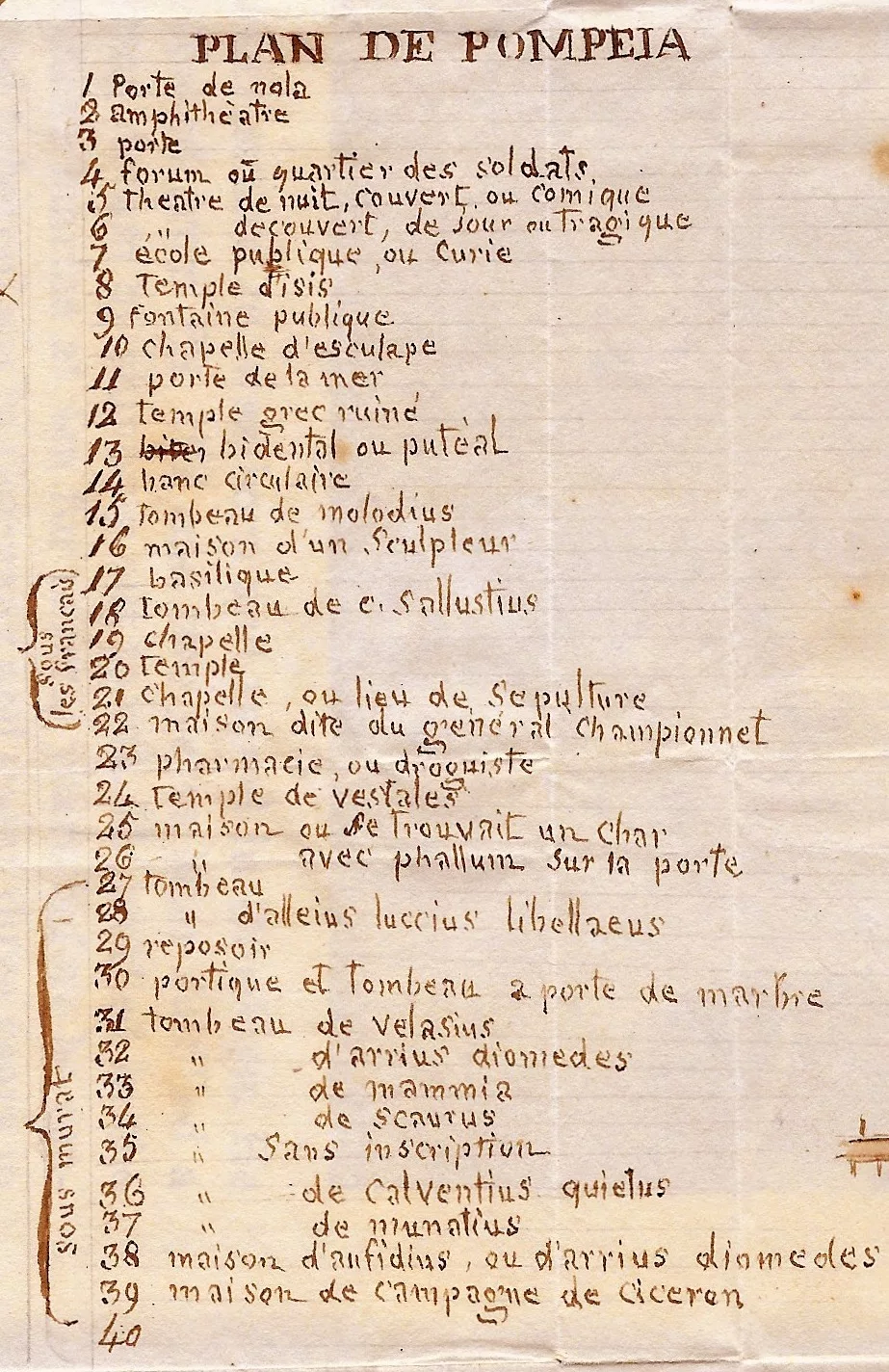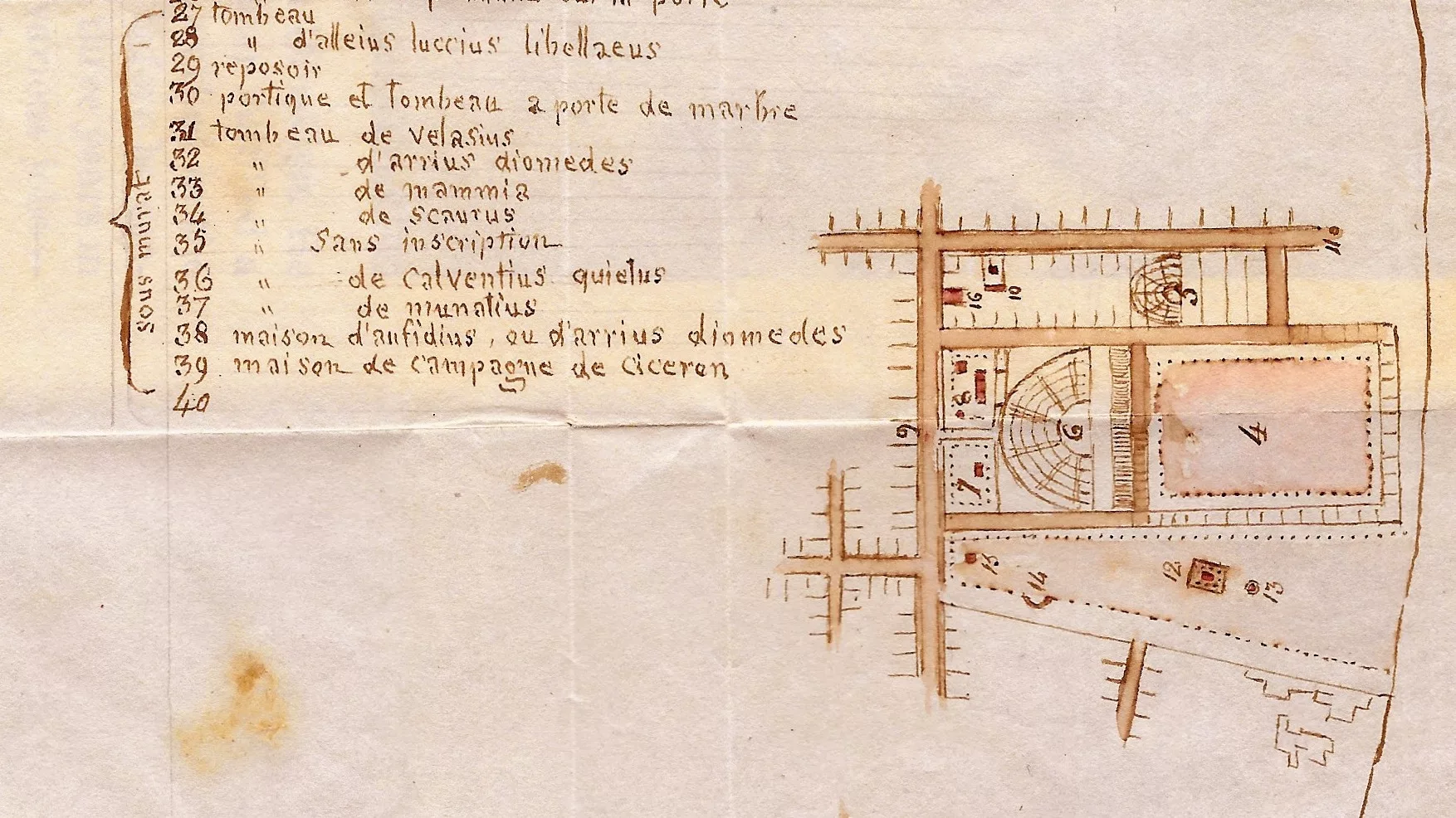 Le comte de Reverseaux a également dessiné à la plume deux cartes dépliantes légendées, placées en fin de volume : carte de la côte du Cap Pausilippe à Cumes, et un plan de Pompéi avec indication des fouilles faites « sous les Français » et « sous Murat ».