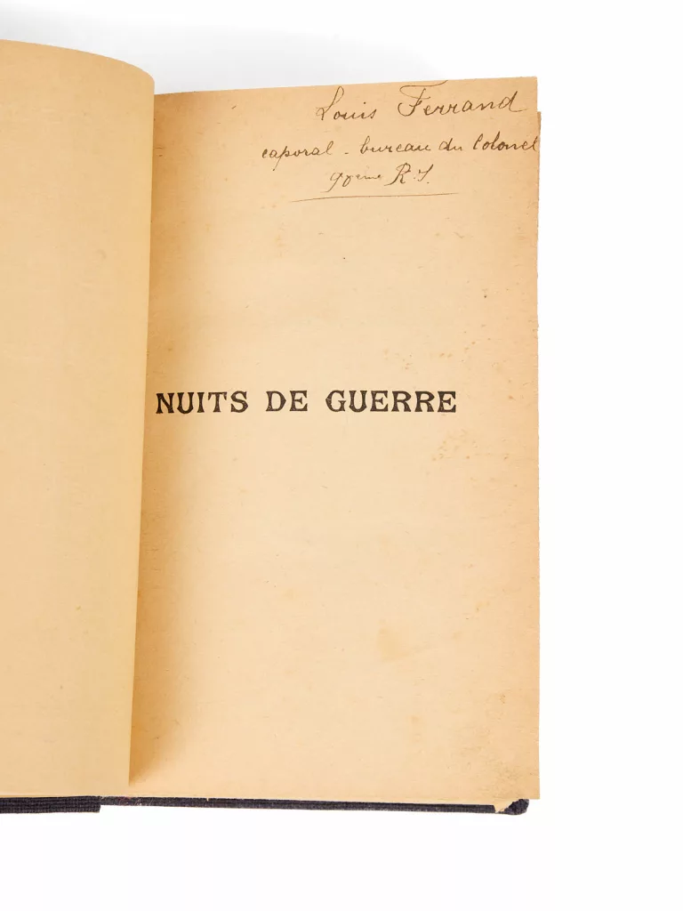 Ex-libris manuscrit d'un combattant : « Louis Ferrand. Caporal. Bureau du colonel, 90e R.I. ».