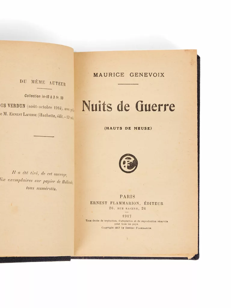Le deuxième des récits de guerre de Genevoix est publié au printemps 1917, un an après Sous Verdun : comme le précédent, aucun jour n’est omis et le récit couvre la période du 5 au 19 octobre 1914, soit une période racontée de 15 jours.