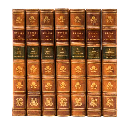 I. Les Fleurs du Mal (avec la préface de Théophile Gautier) – II. Curiosités esthétiques – III. L’Art romantique – IV. Petits poëmes en prose. Les Paradis artificiels – V. Histoires extraordinaires par Edgar Poe – VI. Nouvelles histoires extraordinaires par Edgar Poe – VII. Aventures d’Arthur Gordon Pym. Eurêka par Edgar Poe.