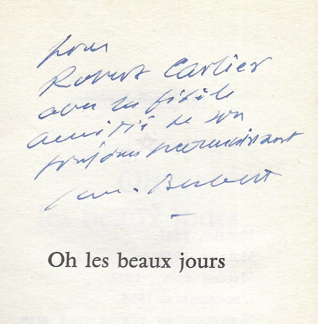 Envoi signé : « pour Robert Carlier, avec la fidèle amitié de son toujours reconnaissant Samuel Beckett ».