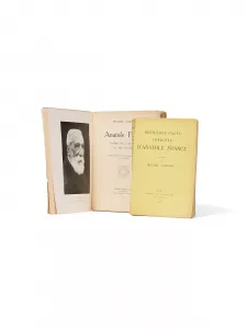 Le secret d'Anatole France(1) Billet autographe à sa mère(1) L'Ile des pingouins(1) L'Affaire Crainquebille(1) Lettre à la Good Will Delegation(1) Portrait photographique(1) La Promesse de l'aube(1) La Tête coupable (The Guilty Head)(1) The Guilty Head(1) Histoire intellectuelle de Louis Lambert(1) Pilote de guerre(1) La Dernière Nuit(1) Album de dessins originaux(1) Le Soulier de satin(1) Airborne(1) Mani. Travels in the Southern Peloponnese(1) Turner(1) La Chartreuse de Parme(1) Le Miel et l'Amertume(1) Serge(1) Kill(1) Flagrant délit