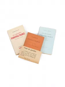 Les Désirs de Jean Servien(1) Pierre Nozière(1) Les Poëmes dorés(1) La Vie littéraire(1) Le Parti noir(1) Le Jardin d'Epicure(1) Alfred de Vigny(1) Deux discours sur Tolstoï(1) Stendhal(1) Trente ans de vie sociale(1) Anatole France. Politique et poète(1) Les Carnets intimes d'Anatole France(1) Vie de Jeanne d'Arc(1) Les Autels de la peur(1) Anatole France, critique de son temps
