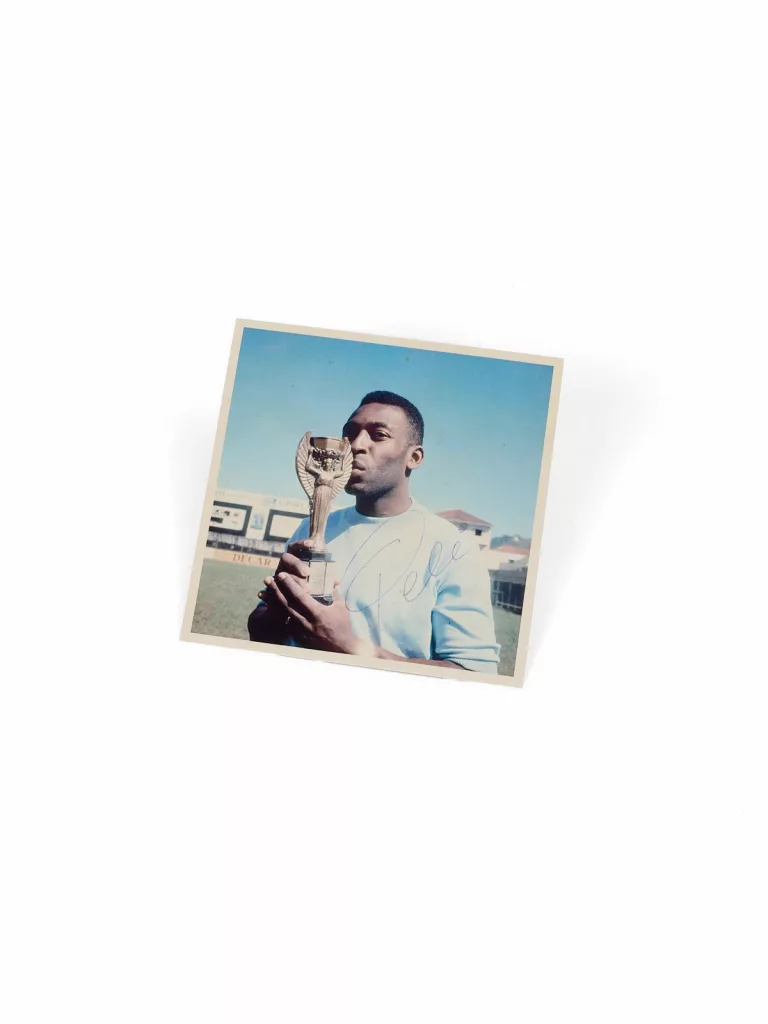 Photographie en couleurs du joueur avec la Coupe Jules Rimet