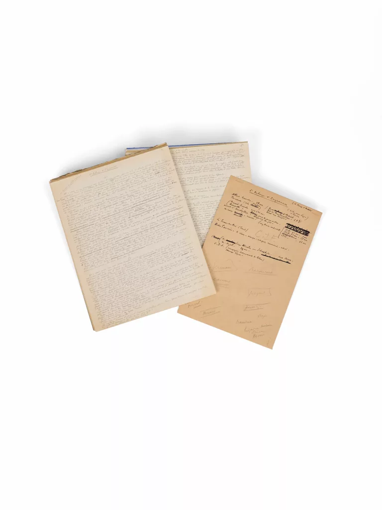 Livres, grands papiers, reliures : textes, poèmes du poète et des ses amis : Aragon, Corti, Char, Fouchet,…. Parmi les documents présentés figure le manuscrit original du poème « Liberté / Une seule pensée ».