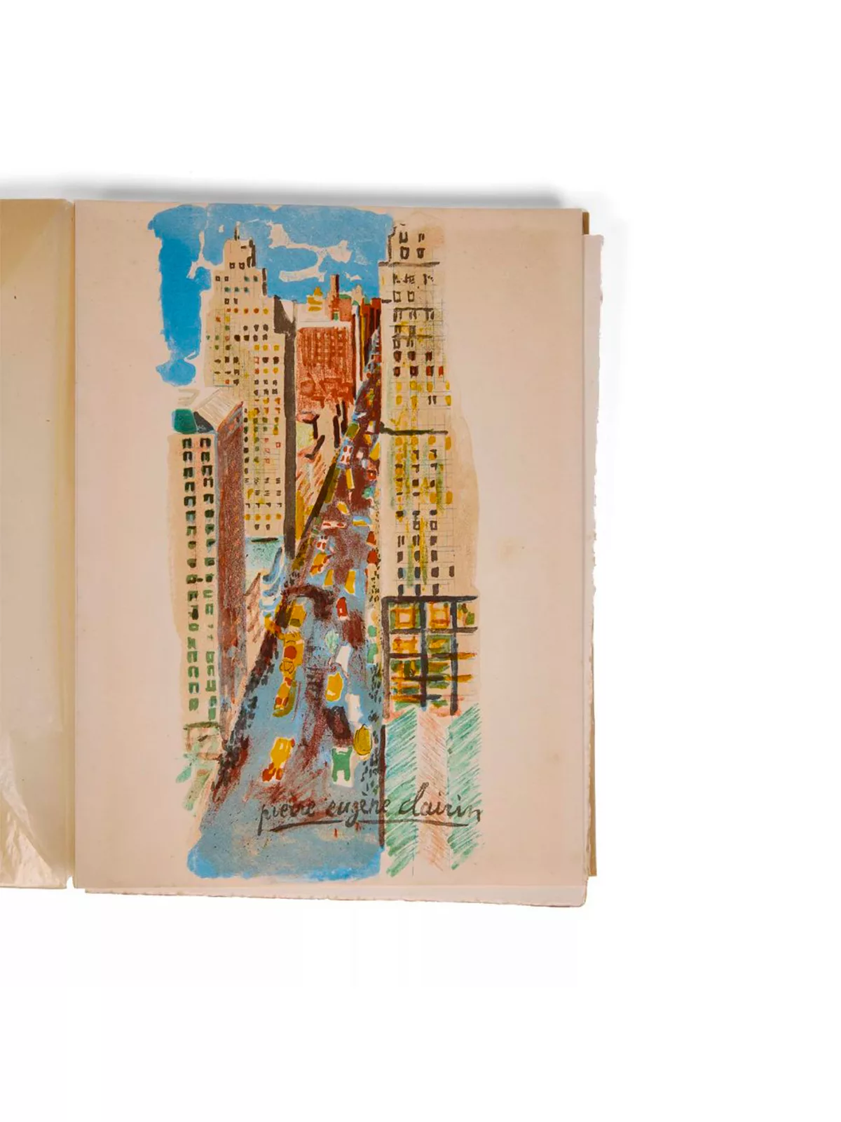 Édition originale. 13 lithographies en couleurs, dont 10 à plein page, donnent à voir des vues de Madison Avenue, New York, Sunset Lodge, Rockefeller Center, Westport, East River, Charlottesville, Allbany, Baltimore, Gloucester,... Tirage unique à 115 exemplaires sur vélin (n° 75).