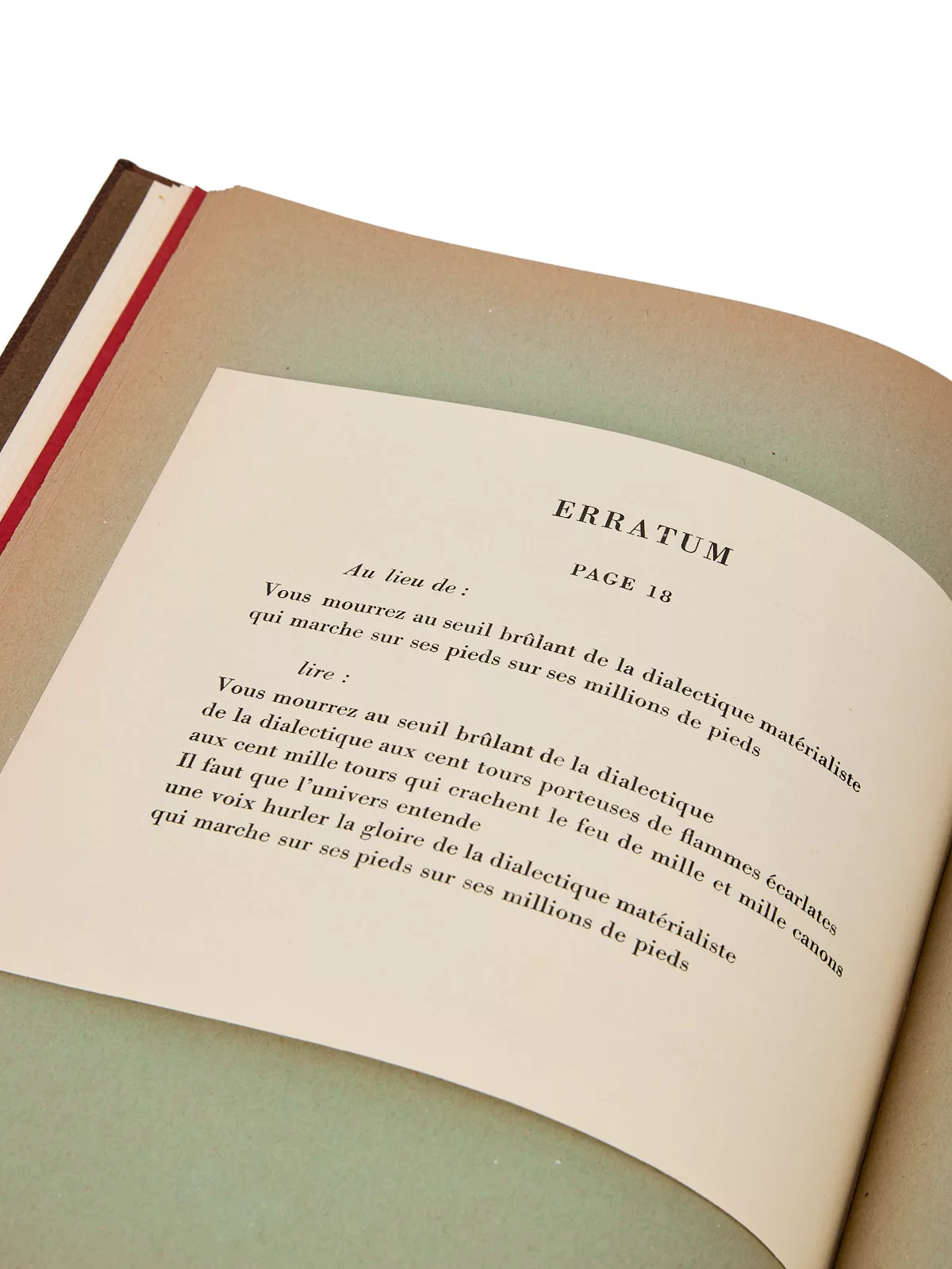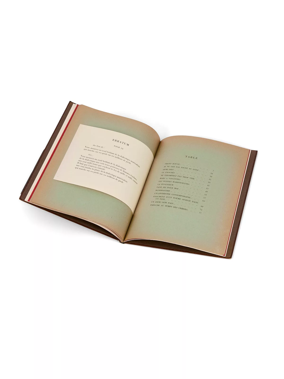 « Front rouge », qui ouvre le recueil, est paru en pré-originale à Moscou, dans le numéro de 1931 de la revue Littérature de la Révolution Mondiale : en raison de cette publication, Aragon est officiellement inculpé « d’excitation de militaires à la désobéissance » et de « provocation au meurtre dans un but de propagande anarchiste ».