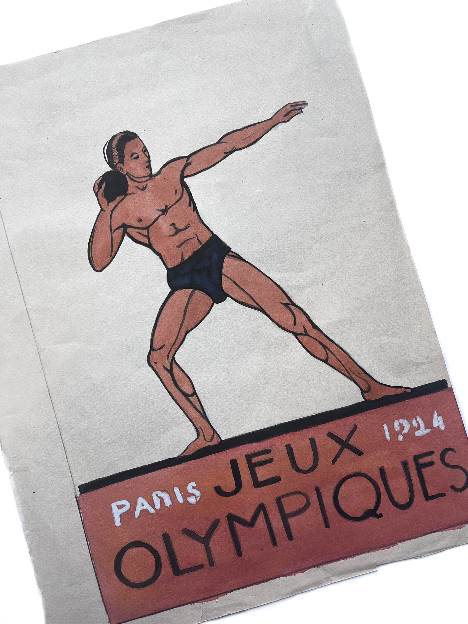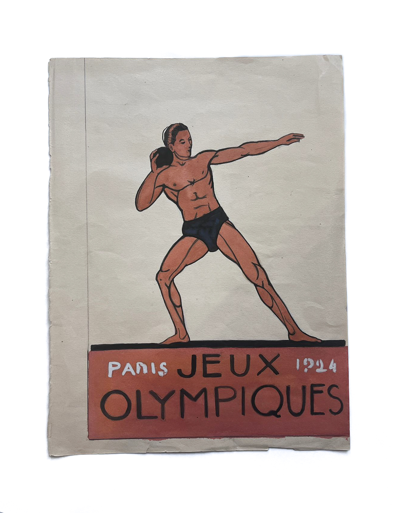 Grand dessin : « le lanceur de poids », avec cartouche « Paris - Jeux Olympiques - 1924 ».