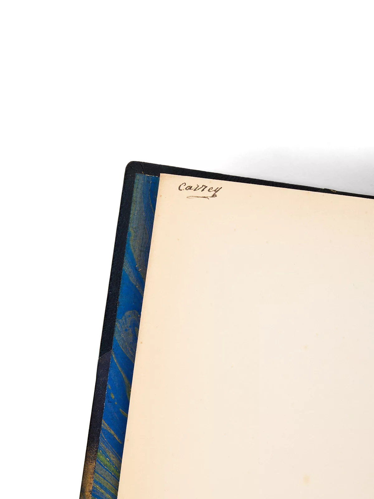1 vol. (130 x 190 mm) de 349 p. et f. Demi-maroquin marine à coins, dos à nerfs, titre doré, filets dorés sur les plats, tête dorée, doubles couvertures et dos conservés (reliure de l'époque, signé « Carrey »).