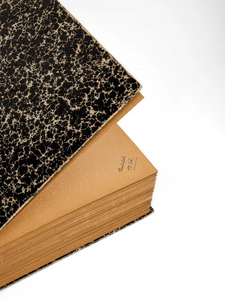 Le principe du braille est d’utiliser le sens du toucher pour l’écriture et la lecture au moyen de points en relief : il doit son nom à Louis Braille qui, devenu aveugle par accident à l’âge de trois ans, fit ses études à l’Institution Royale des Jeunes Aveugles de Paris. En 1821, il prit connaissance d’une méthode d’écriture en points en relief inventée spécifiquement pour les aveugles par Charles Barbier de la Serre : une écriture phonétique composée de 12 points maximum accompagnée d’une écriture alphabétique composée de 10 points maximum. Après plusieurs années de recherches fondées sur cette méthode alphabétique, Louis Braille publia en 1837 son propre système, à six points, qui simplifia le procédé tout en le rendant encore plus efficace : c’est l’écriture orthographique braille telle que nous la connaissons encore aujourd’hui.