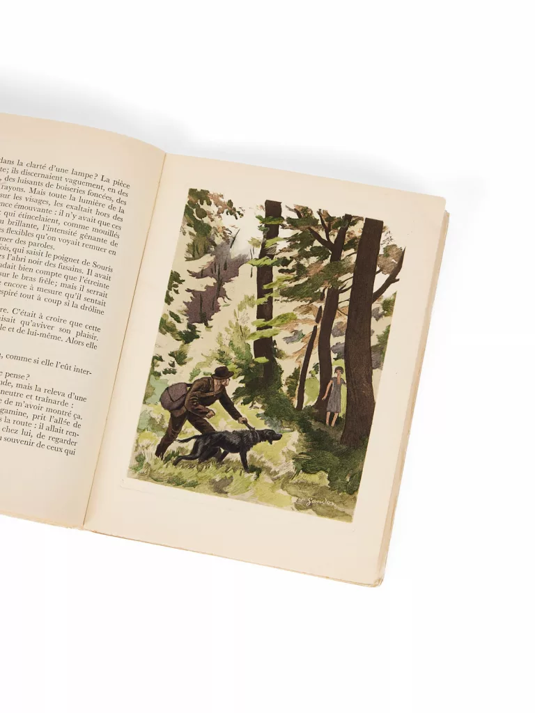 Dans cette édition de Raboliot, ses aquarelles délicates apportent une touche bucolique et stylisée au roman de Genevoix, en phase avec le goût des éditions Rombaldi.