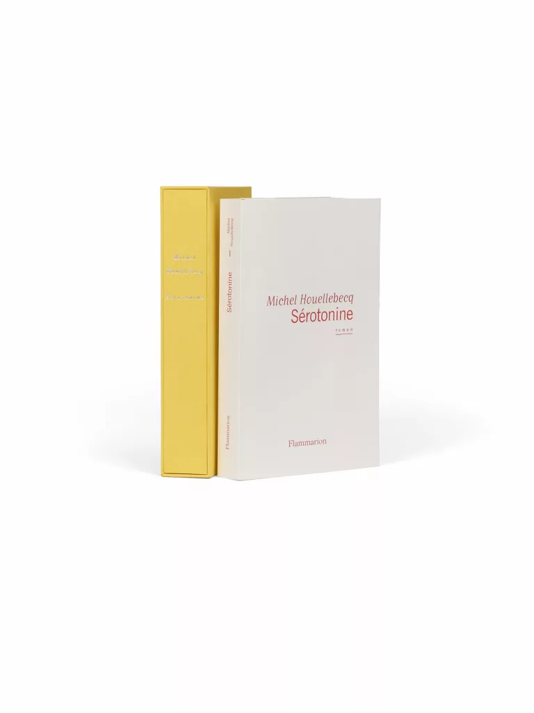 Sérotonine est un précis de décomposition, où il est question du déclin de l’Occident, de l’Union européenne, de la France, de Dieu. Le héros – ou anti-héros -, Florent-Claude Labrouste, est un ingénieur agronome de 46 ans, employé au ministère de l’agriculture, en couple avec une Japonaise de 26 ans, qui se meurt « de chagrin » et doit sa survie à un médicament, le Captorix, qui stimule la production de sérotonine, une « hormone liée à l’estime de soi », qu’il définit dès l’incipit : « C’est un petit comprimé blanc, ovale, sécable ».