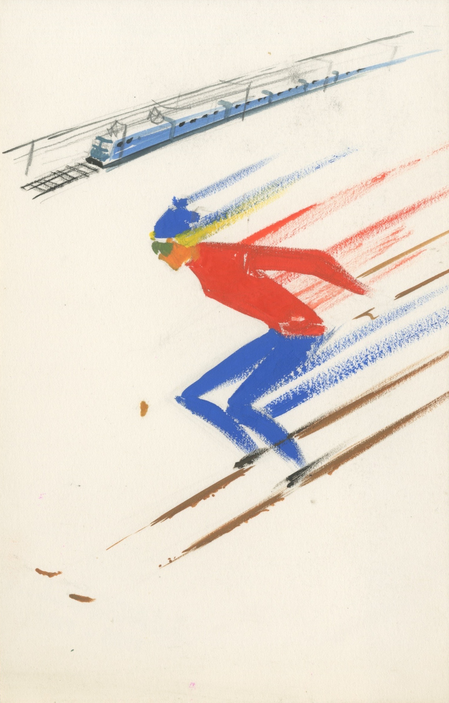 A ce titre, il réalisé dans les années soixante plusieurs des dessins d’une grande campagne pour la SNCF : les sports d’hiver sont en plein essor et, en 1964, le CIO vote l’attribution des Jeux Olympiques d’hiver 1968 à Grenoble. Vingt-cinq ans avant la création de la fameuse campagne, « La Montagne, ça vous gagne ! », la SNCF souhaite mettre les Français sur les rails de l’or blanc, avec une campagne alliant la rapidité des skieurs à celle de ses trains.