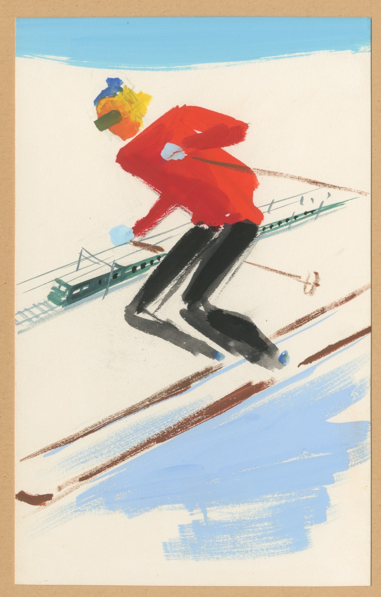 A ce titre, il réalisé dans les années soixante plusieurs des dessins d’une grande campagne pour la SNCF : les sports d’hiver sont en plein essor et, en 1964, le CIO vote l’attribution des Jeux Olympiques d’hiver 1968 à Grenoble. Vingt-cinq ans avant la création de la fameuse campagne, « La Montagne, ça vous gagne ! », la SNCF souhaite mettre les Français sur les rails de l’or blanc, avec une campagne alliant la rapidité des skieurs à celle de ses trains.