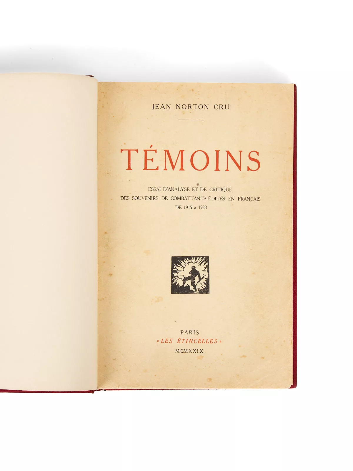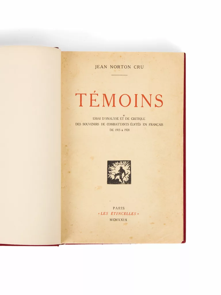 C’est dix ans après la fin du conflit que paraît, sous la forme d’un dictionnaire encyclopédique, un « essai d’analyse et de critique de souvenirs de combattants édités en français de 1915 à 1928 », comme l’indique le sous-titre de l’ouvrage, intitulé Témoins. Son auteur est alors un parfait inconnu, professeur de littérature dans une université privée américaine, le Williams College, à Williamstown, dans le Massachusetts. Jean Norton Cru – qui tient son deuxième nom de sa mère, Catherine Norton, anglaise – est né à Labatie-d’Andaure, en Ardèche. Parfaitement bilingue, il devient d’abord instituteur, avant de partir enseigner dans le Kent, puis de rejoindre son frère à Williamstown, qui y enseigne déjà.