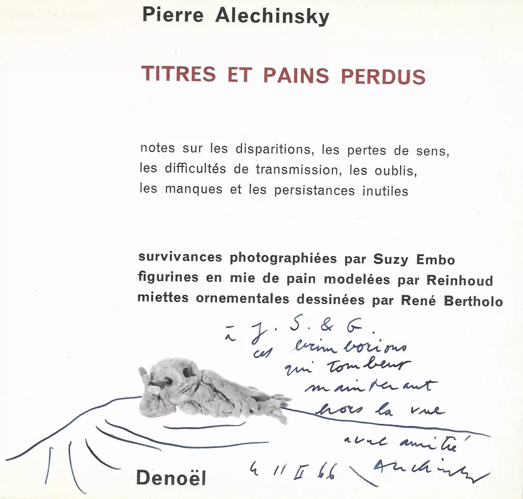 Envoi signé : « A J. S. & G. ces brimborions qui tombent maintenant hors la vue, avec amitié. 11.II .66. Alechinsky ».