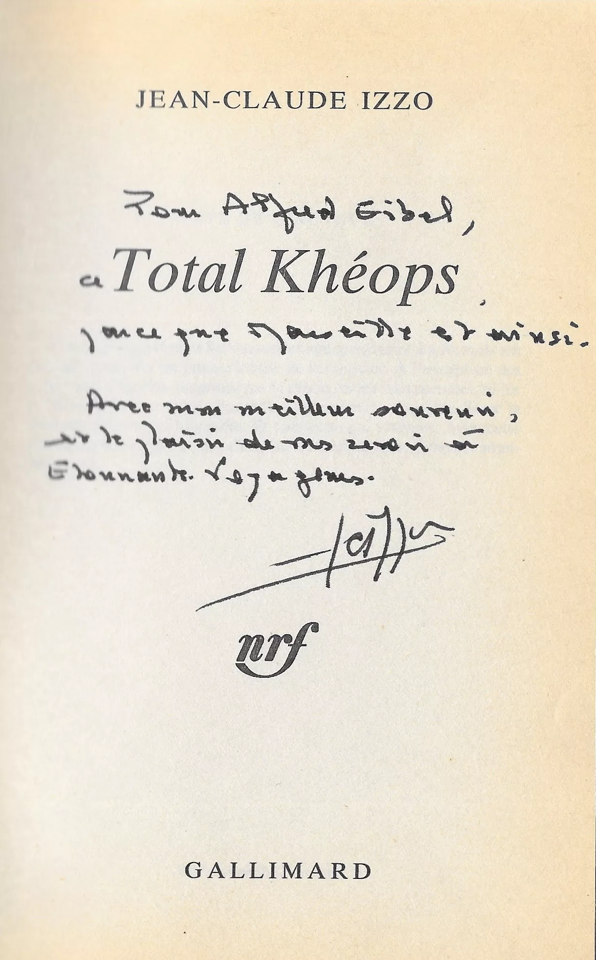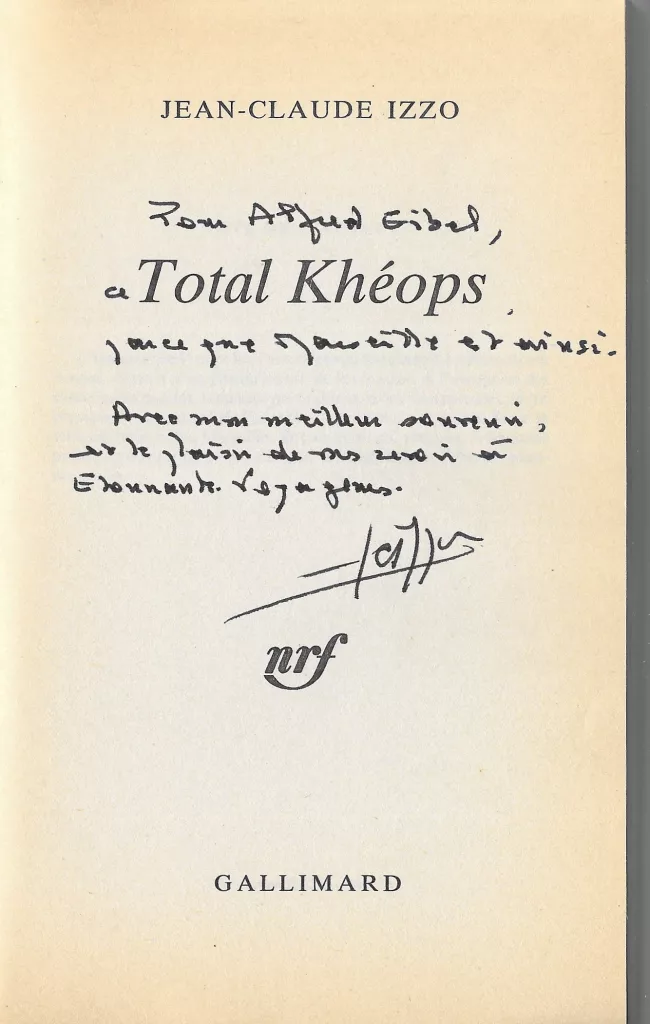 Envois signés : « Pour Alfred [Eibel], ce [Total Keops] parce que Marseille est ainsi. Avec mon meilleur souvenir et le plaisir de vous revoir à Étonnants voyageurs » ; « Pour vous Alfred, ce [Chourmo], petite suite marseillaise qui se cherche un bonheur, à vous Jean-Claude Izzo » ; « Pour toi, Alfred, cette [Solea] marseillaise qui vibre du mal qui nous [illisible]. À toi, la poésie de ces lignes, et l’amitié... Jean-Claude Izzo ».