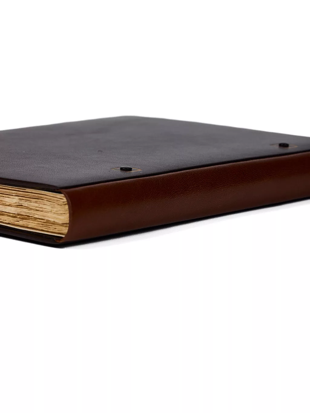 1 vol. (165 x 125 mm) de 139 p., [1] et 1 f. Reliure à plats rapportés, box marron orné d'un décor mosaïqué comprenant le titre et deux petits rivets au dernier plat, dos lisse muet, doublures de velours beige, couvertures et dos conservés, emboîtage (reliure signée d'Antonio P. N., 1991).