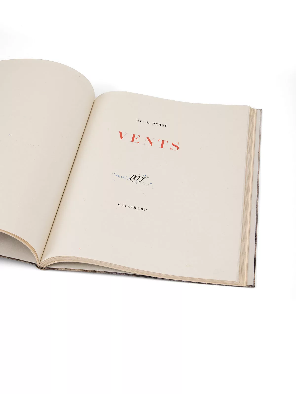 Vents est publié chez Gallimard en 1946 en édition de luxe de grand format et en tirage limité et numéroté. Claudel lui consacre alors une importante étude dans la Revue de Paris (1er novembre 1949) à celui qui est encore pour le public français « un inconnu », de surcroît éloigné, en exil. Lors de l’édition de ses OEuvres complètes, pour La Pléiade, dont le poète rédigera lui-même les notices, voici ce qu’il en dira : « Saint-John Perse a toujours accordé à Vents une importance particulière dans son oeuvre. Ce poème fut sans doute le moins accessible au lecteur français parce qu’il ne fut, à la demande même du poète, publié tout d’abord qu’en édition de luxe, de grand format et grande typographie, à tirage limité entièrement numéroté. »